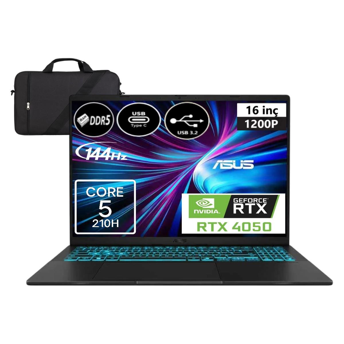 Asus Vivobook 16 V3607VU Intel Core 5 210H 40GB 2tb SSD RTX4050 6gb Windows 11 Home 16" Wuxga 144HZ 300NITS Taşınabilir Bilgisayar RP276&Cimete Çanta