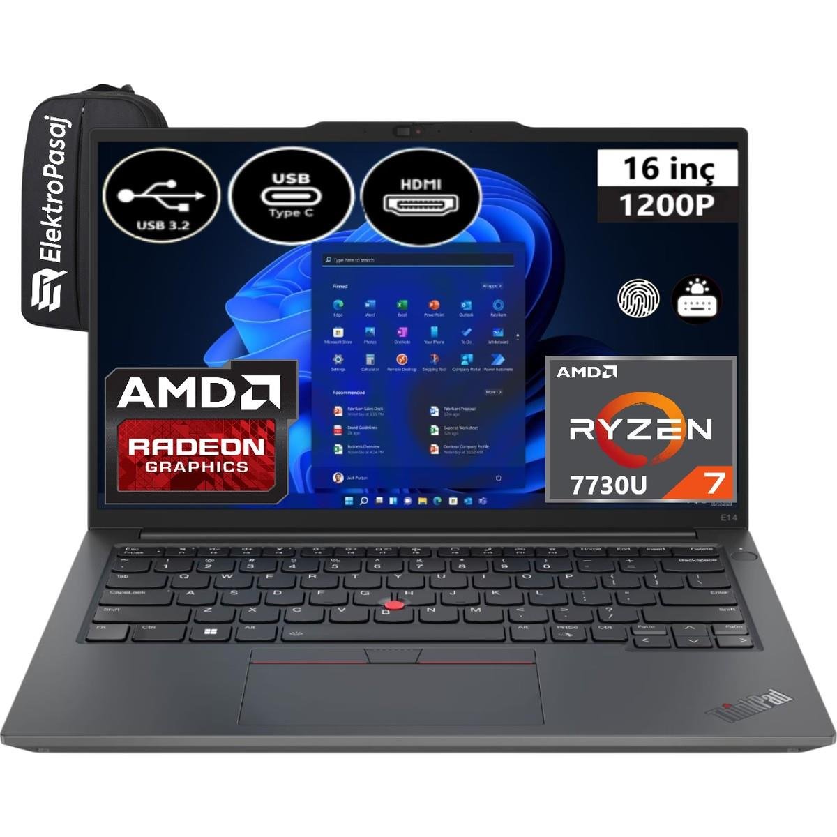 Lenovo ThinkPad E16 Gen 1 21JT0017TX-EP11 Ryzen 7 7730U 40 GB RAM 2 TB SSD 16" WUXGA Windows 11 Pro + ElektroPasaj Çanta
